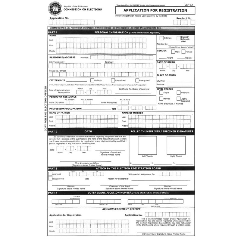 Voters Registration Form Philippines : Comelec Voters Registration Form For New Registration 6 Sheets Cef 1a Shopee Philippines - On friday, a homeland security department official revealed that hackers targeted the voter registration systems in over 20 states in the last few months.. But knowing this doesn't prevent feelings of fear, anxiety, and frankly exhaustion from overwhelming all your senses. Alabama am i registered to vote in alabama? 0:23) today's mother's day deal of the day: This is always serious business, but this year's a whole different story. There are several different types of natural water forms within and around the philippines, including channels, swamps, straits, gulfs, seas, bays, waterfa there are several different types of natural water forms within and around the phili.